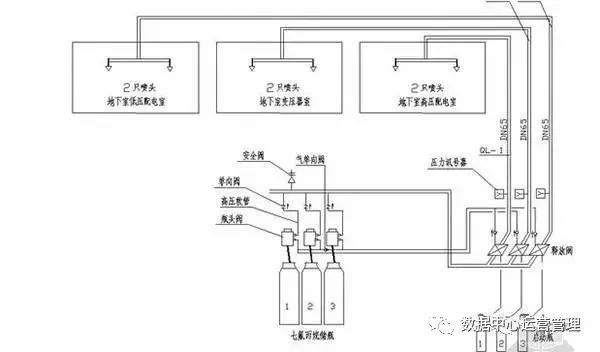 在不能使用水介質來進行試驗的場所中,象本工程是安裝在變配電室那的,這種情況則可采用氣壓強度試驗代替,氣壓強度試驗壓力的0.8倍,或滅火劑初始噴射時系統的實際工作壓力的1.2倍進行。