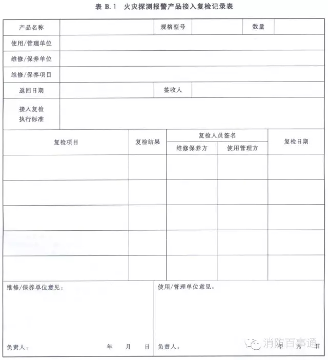附錄B火災(zāi)探測報(bào)警產(chǎn)品接入復(fù)檢記錄表