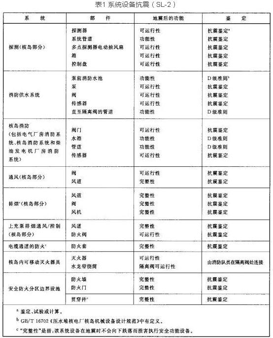 核電廠的火災(zāi)自動(dòng)報(bào)警系統(tǒng)需滿足相關(guān)質(zhì)保等級的要求并且系統(tǒng)在運(yùn)行階段要接受定期試驗(yàn)檢查,另外,所有設(shè)備應(yīng)經(jīng)過抗震試驗(yàn)鑒定并能承受極限安全地震(SL-2)荷載,且保證其可運(yùn)行性(見下表1)。