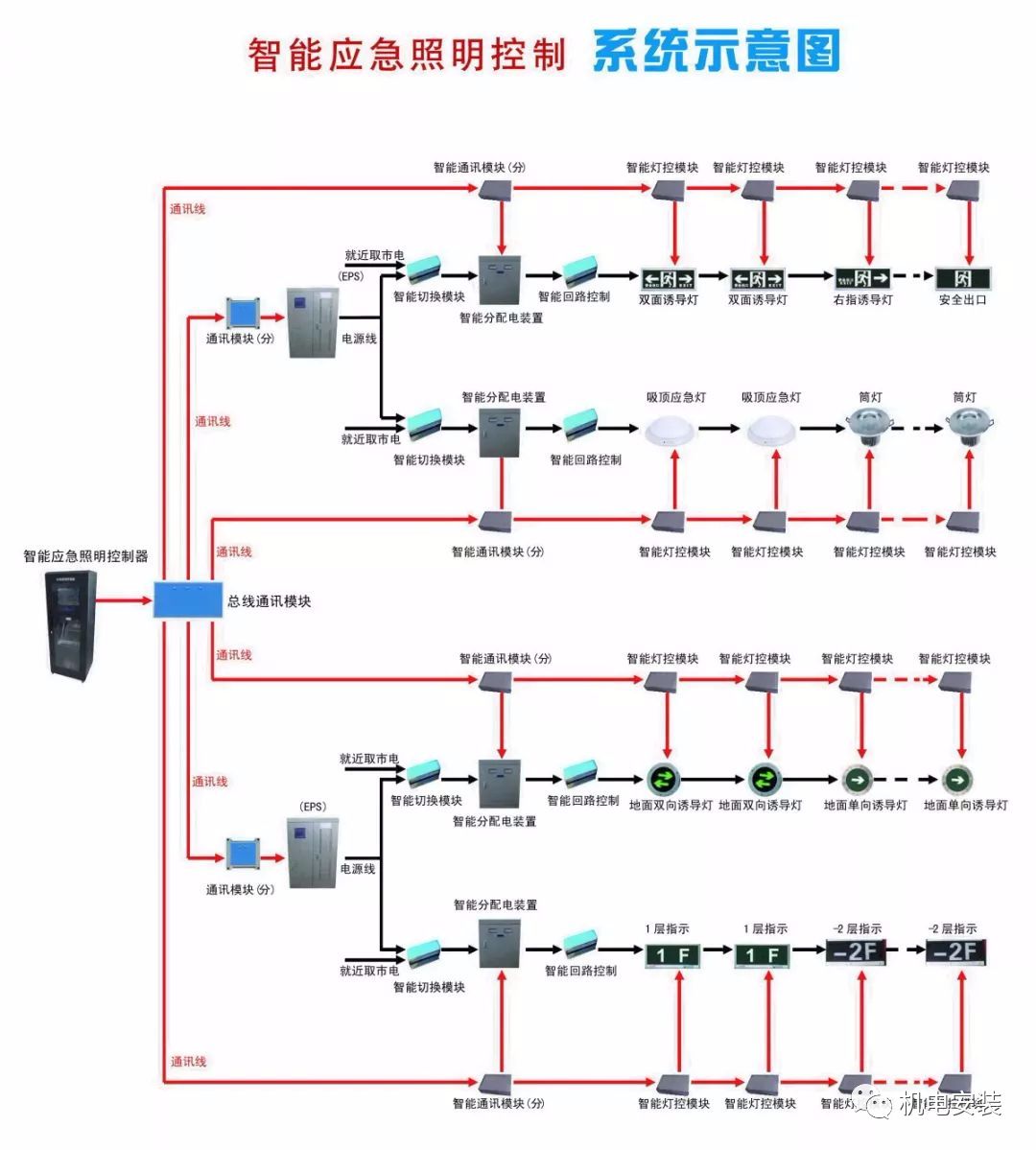 2.非集中控制型系統,是指系統未設置應急照明控制器,由應急照明集中電源或應急照明配電箱分別控制其配接消防應急燈具工作狀態的消防應急照明和疏散指示系統。